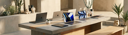 Apple laptopovi koriste macOS i Apple Silicon procesore (M, M Pro, M Max), koji su posebno optimizovani za efikasan rad i izuzetno dug vek baterije koji često prelazi 15 sati aktivne upotrebe. U praksi to znači tiši rad (mnogi modeli nemaju ventilatore), manju potrošnju energije i stabilne performanse čak i kada laptop nije na punjaču.
