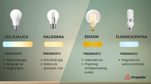Vrsta sijalice direktno utiče na kvalitet i ton svetla. Kupci često biraju LED varijante zbog uštede energije i dugog veka trajanja.